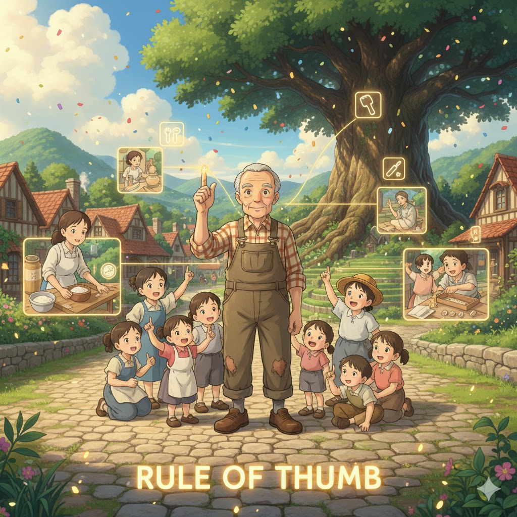 - rule of thumb은 이론적 지식과 경험적 지식을 대비합니다. 과학적 증거는 없지만, 실제 경험을 통해 얻어진 경험 법칙이 빠르고 효율적인 의사 결정에 유용하다는 실용주의적 관점을 제시합니다.