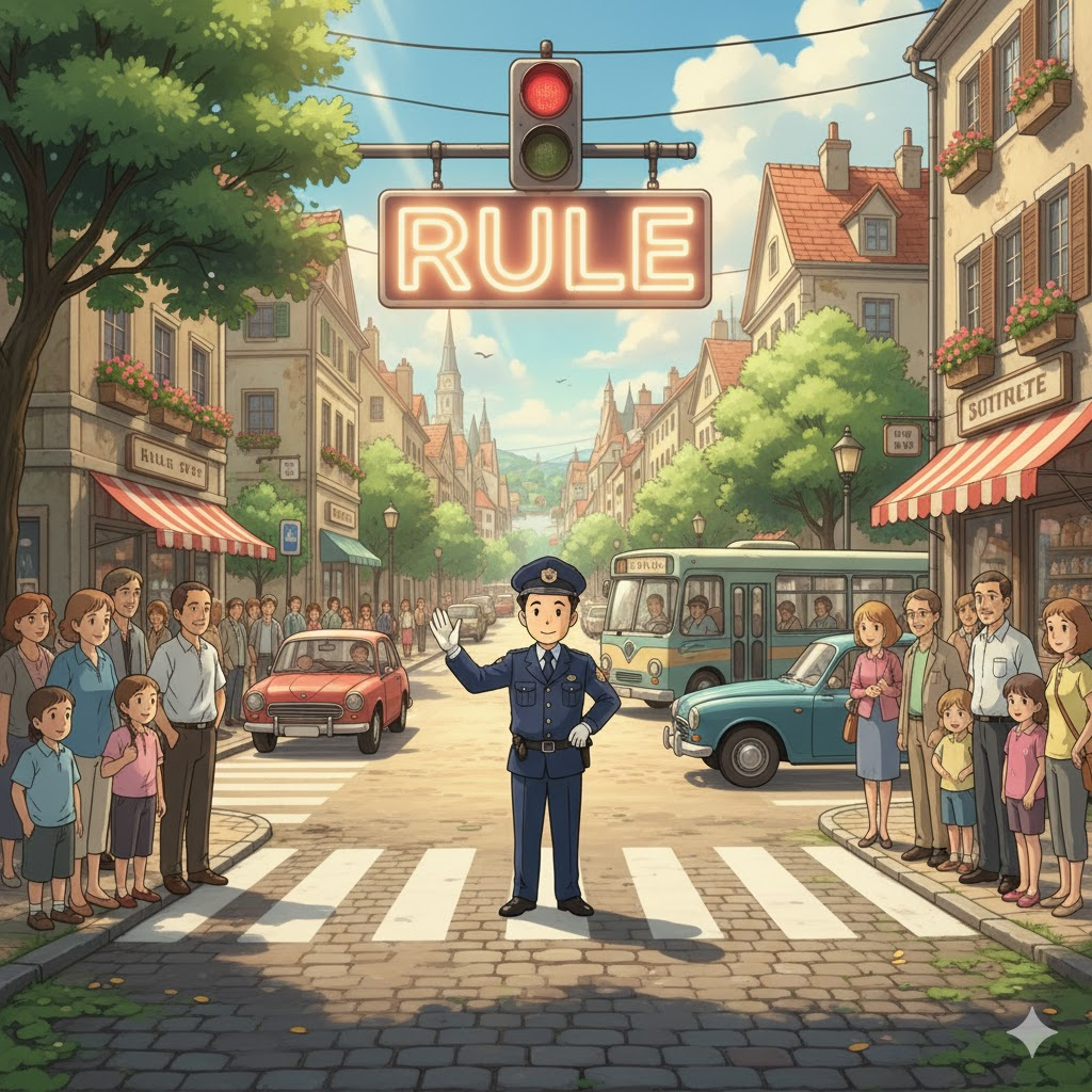rule [ruːl] 모두가 지켜야 하는 약속이나 정해진 기준을 뜻하는 단어.
