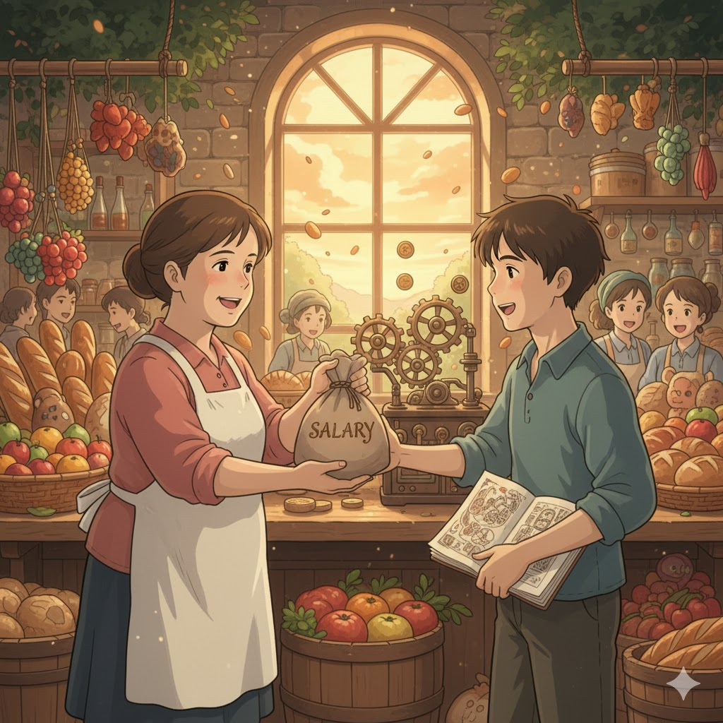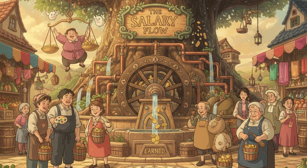 | 라틴어 salārium (소금 공급용 돈) | "일정한 보상으로 지급되는 돈" | 정기적인 봉급/월급 → 직무에 대한 고정 급여 → 소득 |