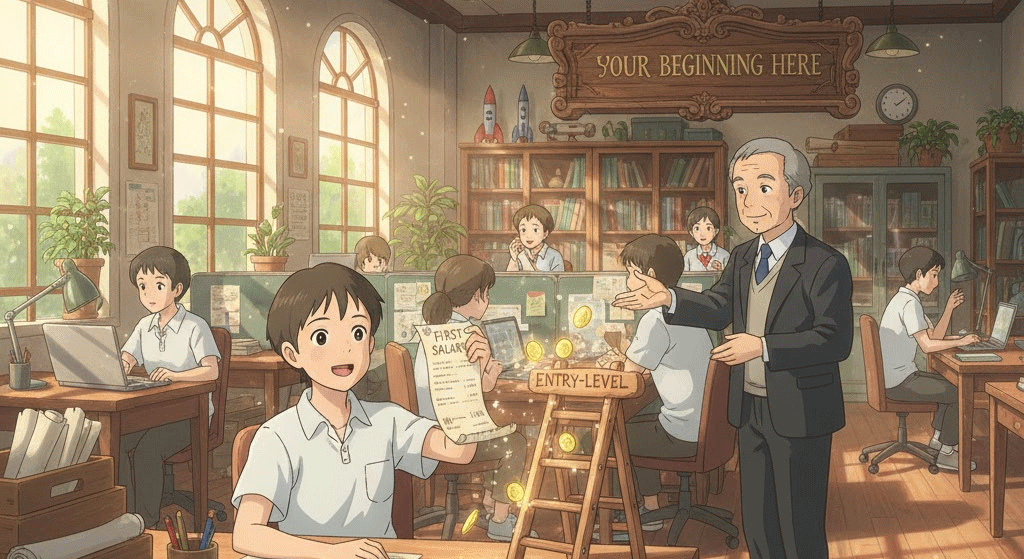 - 해석: 경력이 없거나 적은 신입 직원에게 제시되는 가장 낮은 수준의 급여.