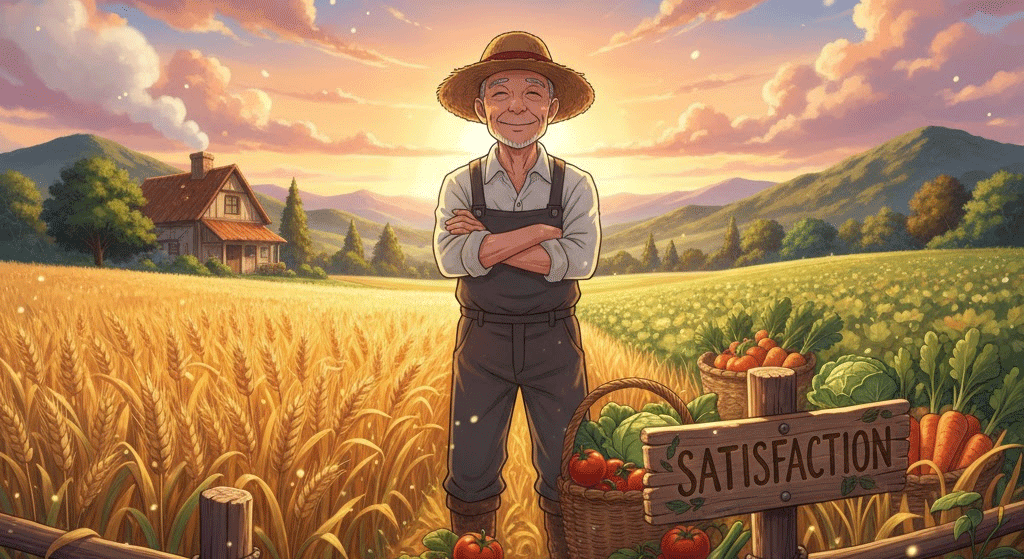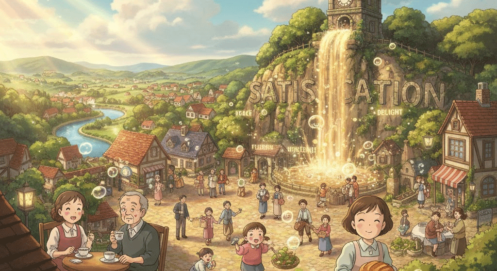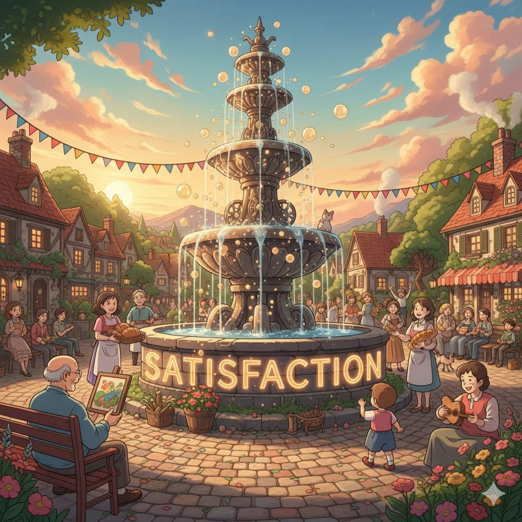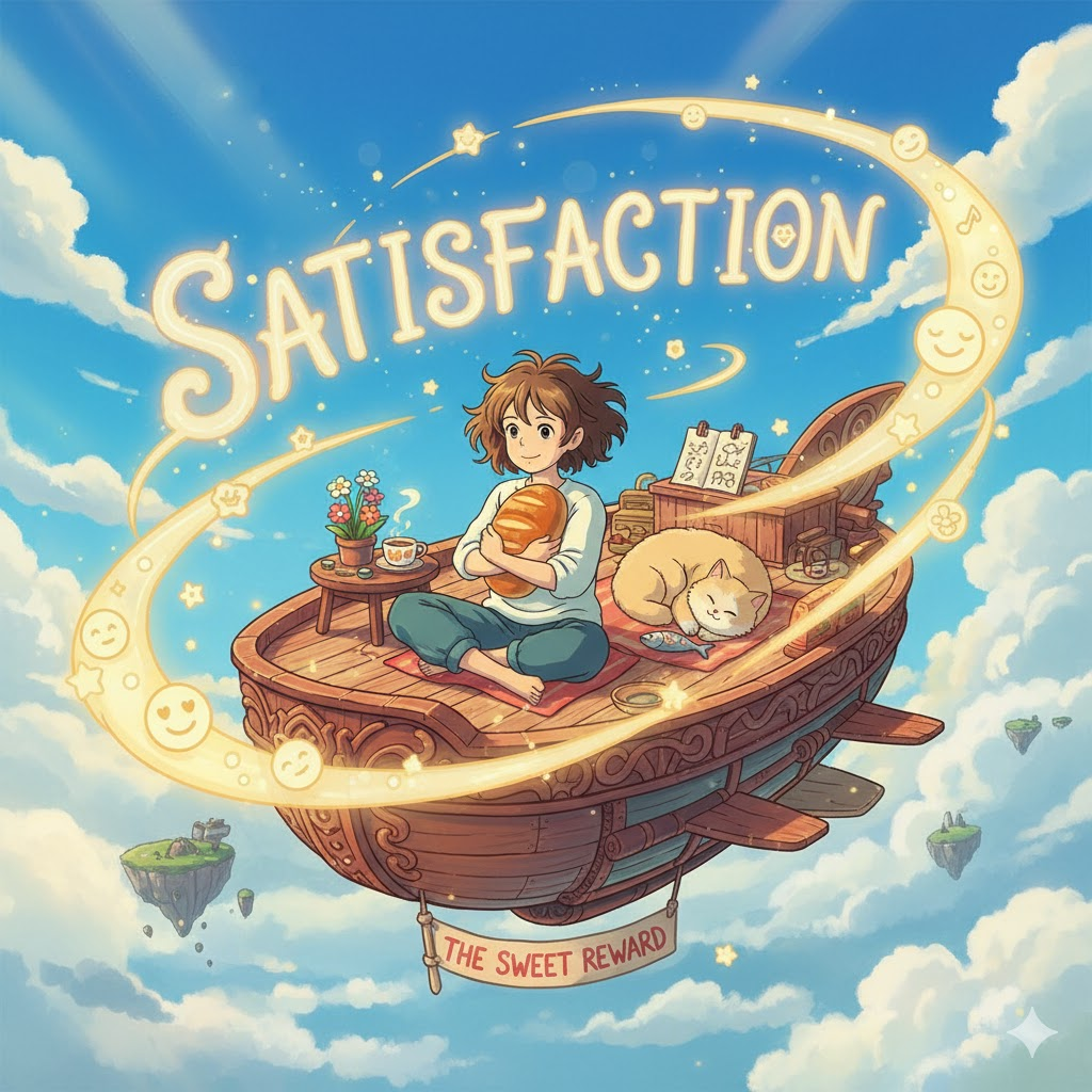 만족, 만족감. 기대나 요구가 충족된 상태에서 느끼는 즐거운 감정.