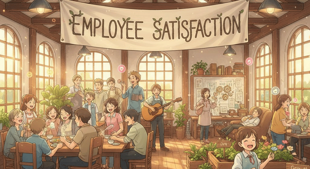 - 해석: 직원이 자신의 근무 환경, 보상, 동료 관계 등에 대해 느끼는 만족 수준.