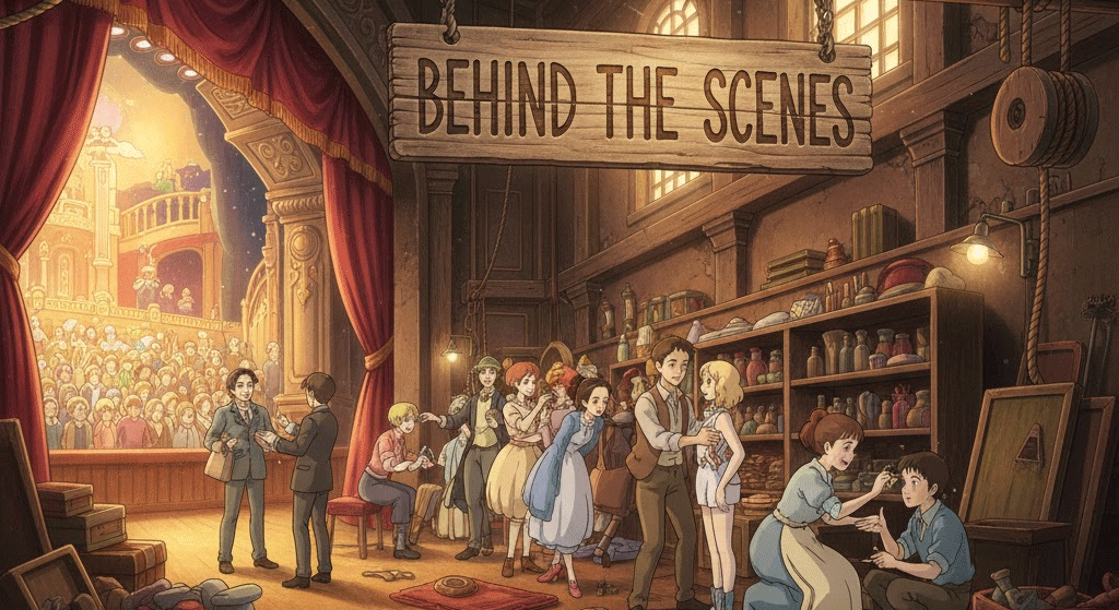 - A lot of hard work goes on behind the scenes before the show. (쇼가 시작되기 전에 무대 뒤에서 많은 노력이 들어간다.)
