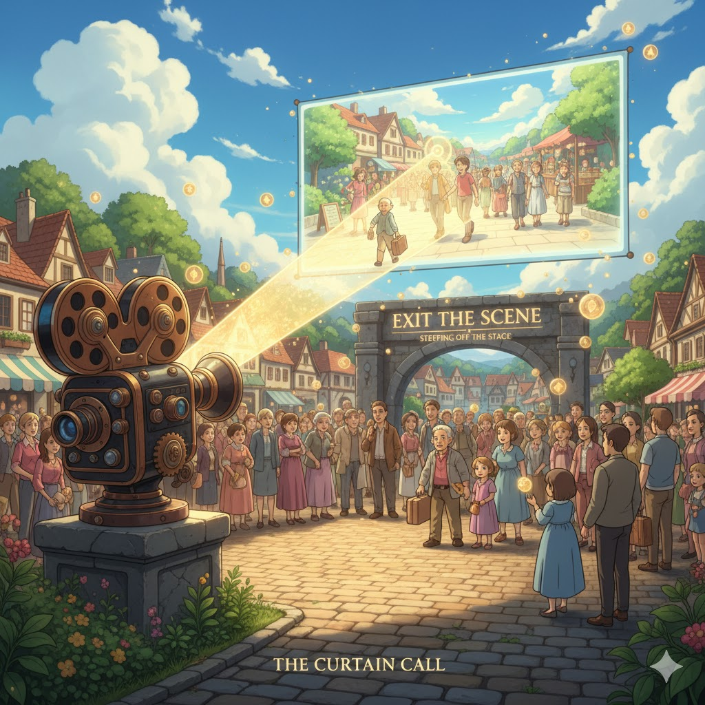 - 해석: 특정 활동, 역할, 또는 공적인 위치에서 물러나거나 사라지는 행위. (come onto the scene과 대비)