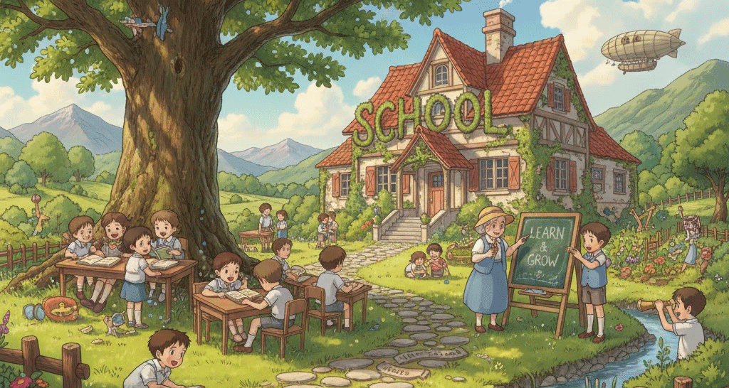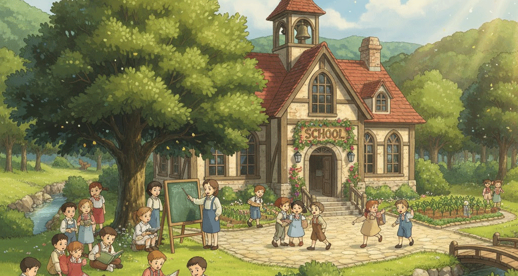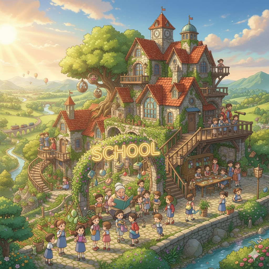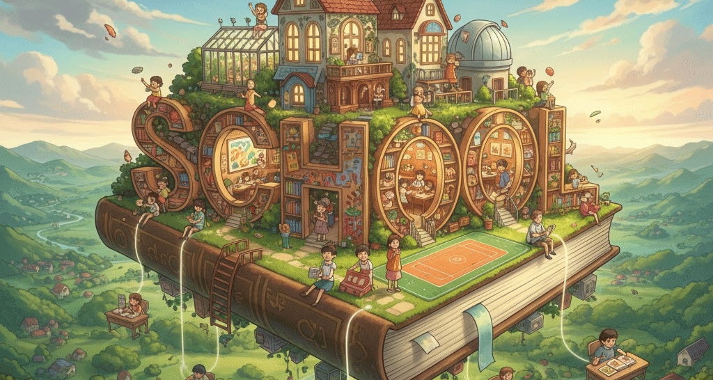 | schola (라틴어) | '여가', '휴식' → '배움의 장소' | 원래 여가 시간에 토론하고 배우는 곳. | 배움 (Learning) |