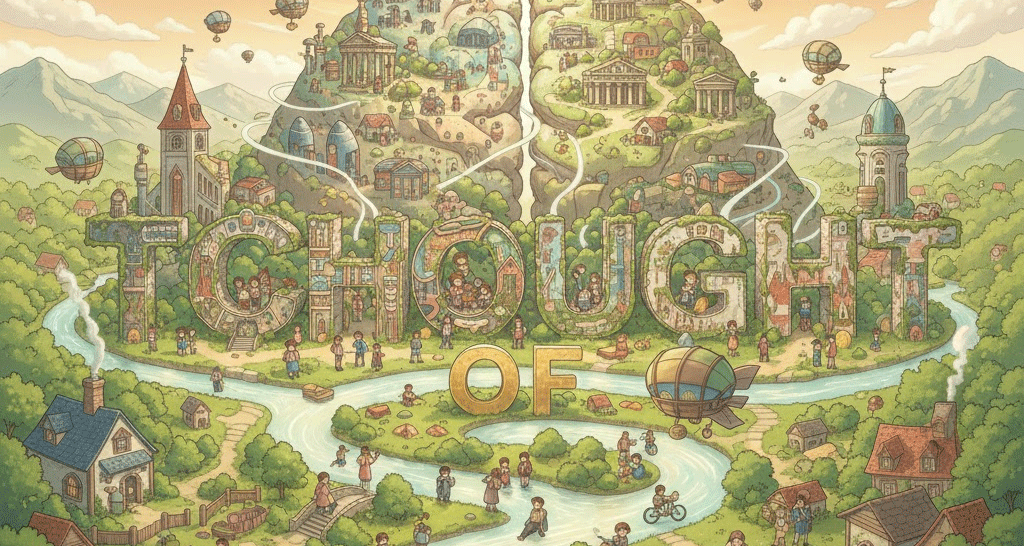 | of thought | 사고의 | 숙어구로, '사상' '적' '집합'. | '특정' '이론' '이나' '믿음' '을' '공유' '하는' '학자' '들' '의' '집단' '임을' '나타냄'. |