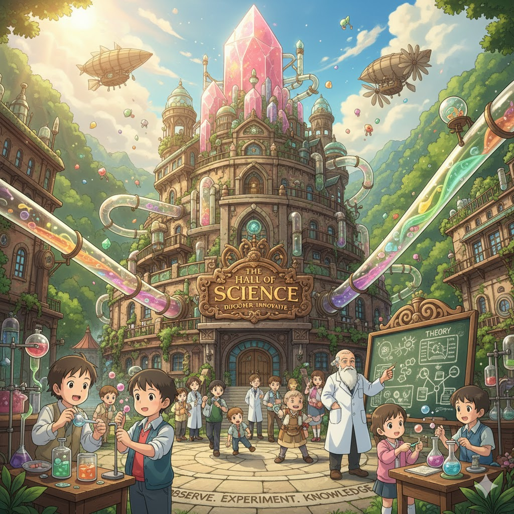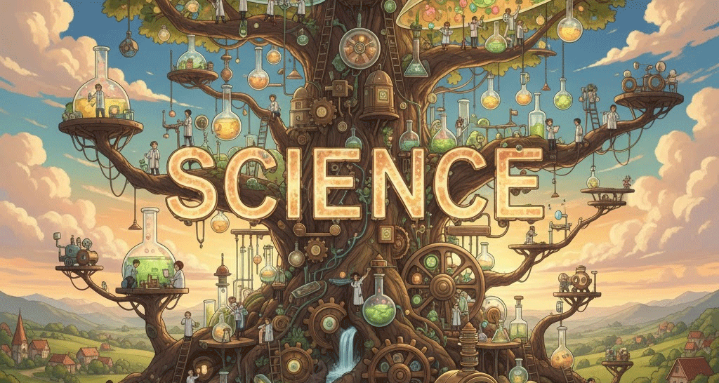 과학, 학문. 관찰과 실험을 통해 지식을 탐구하는 체계적인 분야.