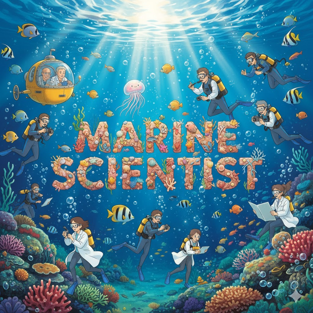 - 해석: 바다, 해양 생물, 해양 환경 등을 연구하는 과학자.