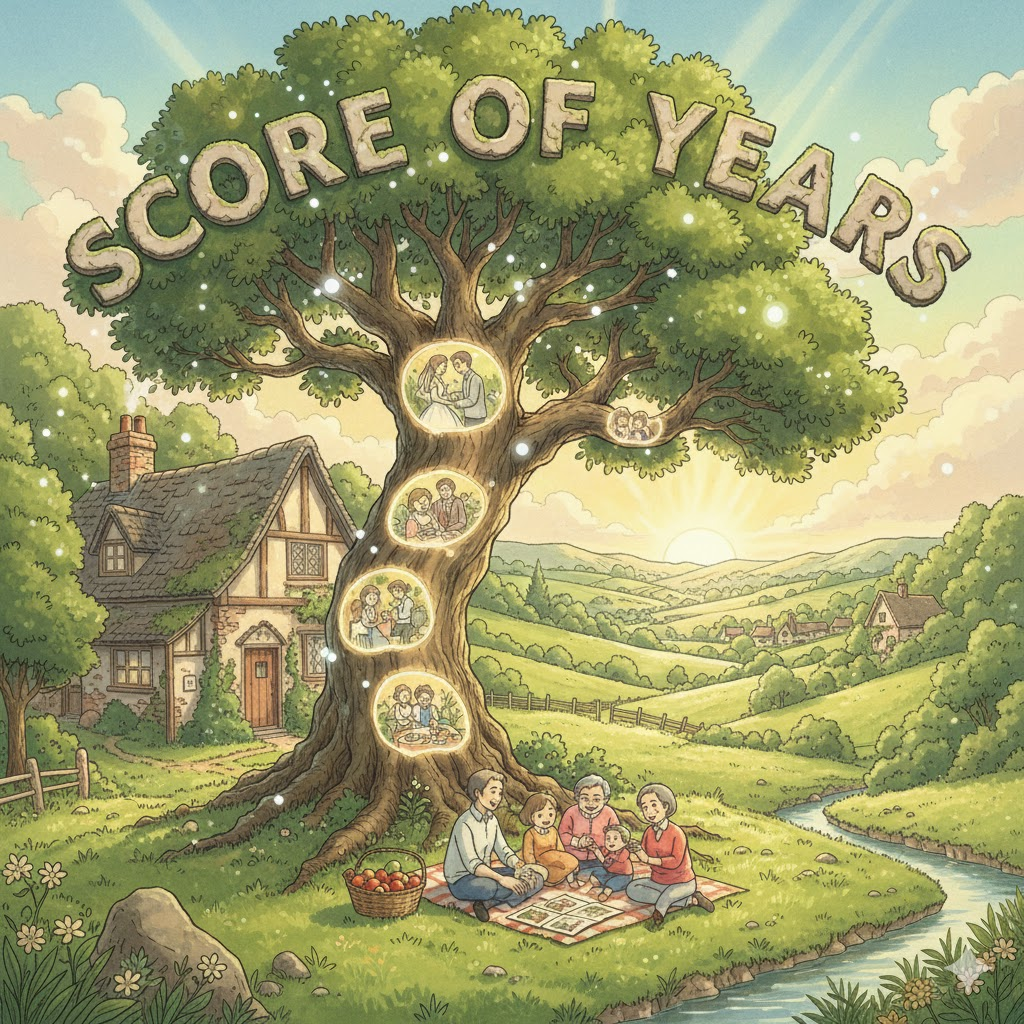'20'(twenty)이라는 '단위'(unit)의 '수'(score)를 사용하여, '20년' (a score of years) 또는 '수십'(multiple scores) '년'과 같은 '오랜'(long-term) '시간'(time) '기간'(period)을 '문학적'(literary)이거나 '격식적'(formal)으로 '표현'(express)하는 표현입니다. '세월'(time)의 '흐름'(passage)과 '지속성'(continuity)을 강조합니다.