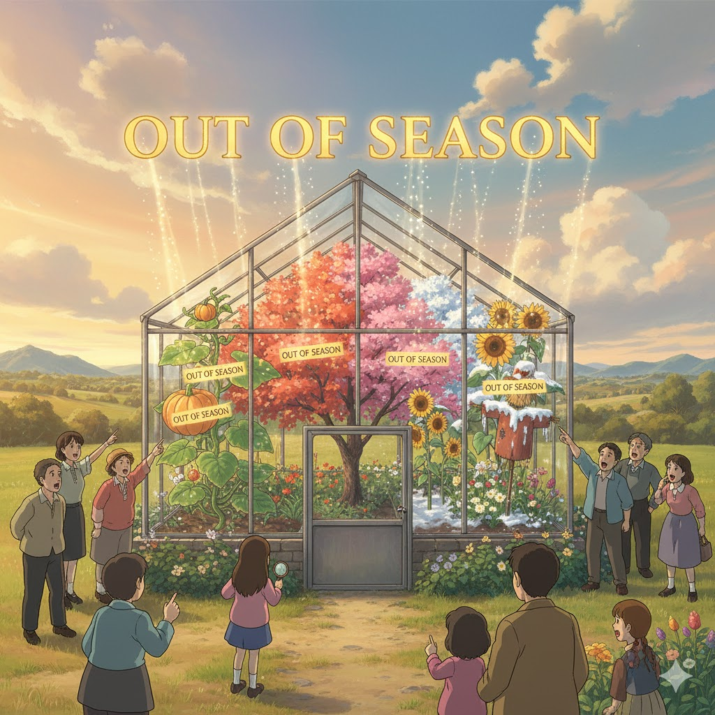 - 해석: 과일, 채소, 또는 상품이 정상적인 수확 또는 판매 시기가 아닌 상태, 또는 관광객이 적은 비수기인 상태.