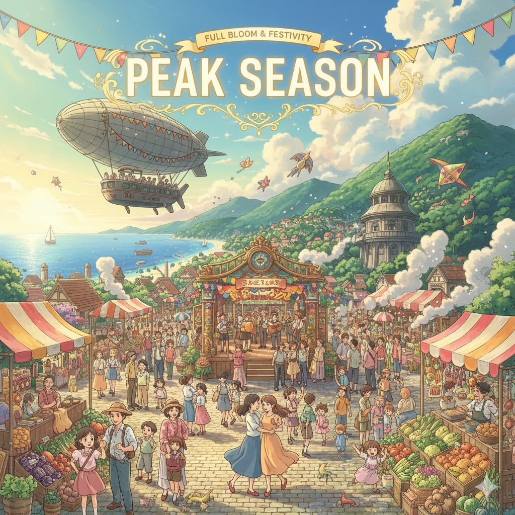 - 해석: 여행, 관광, 또는 특정 상품의 수요가 가장 많고 가격이 높은 기간. (off season과 대비)