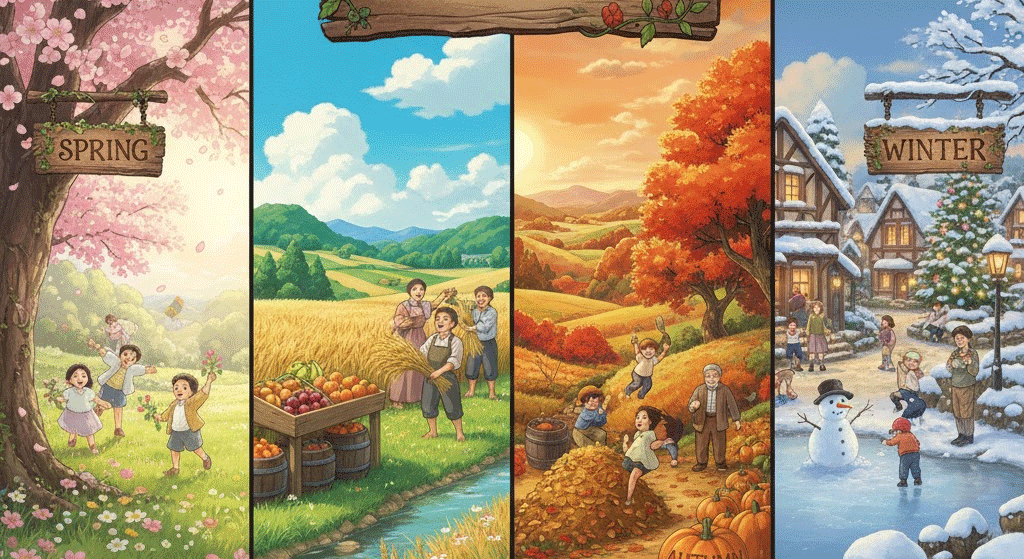 | 종합 뉘앙스 | 1년 중 주기적으로 돌아오는 특정 시기를 의미하며, 이는 기후(봄, 여름 등) 또는 특정 활동(휴가, 스포츠)에 따라 구별됨. | '주기적으로 구분된 시기' |