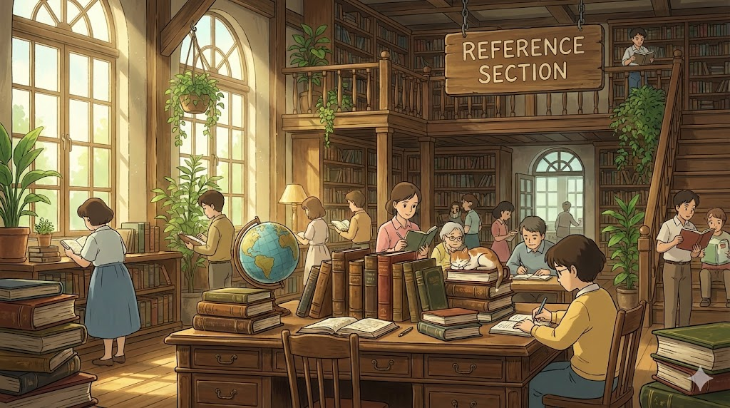 - 예문: Students spent hours working in the reference section of the university library for their research papers. (학생들은 연구 논문을 위해 대학 도서관의 참고 자료실에서 몇 시간을 보냈다.)