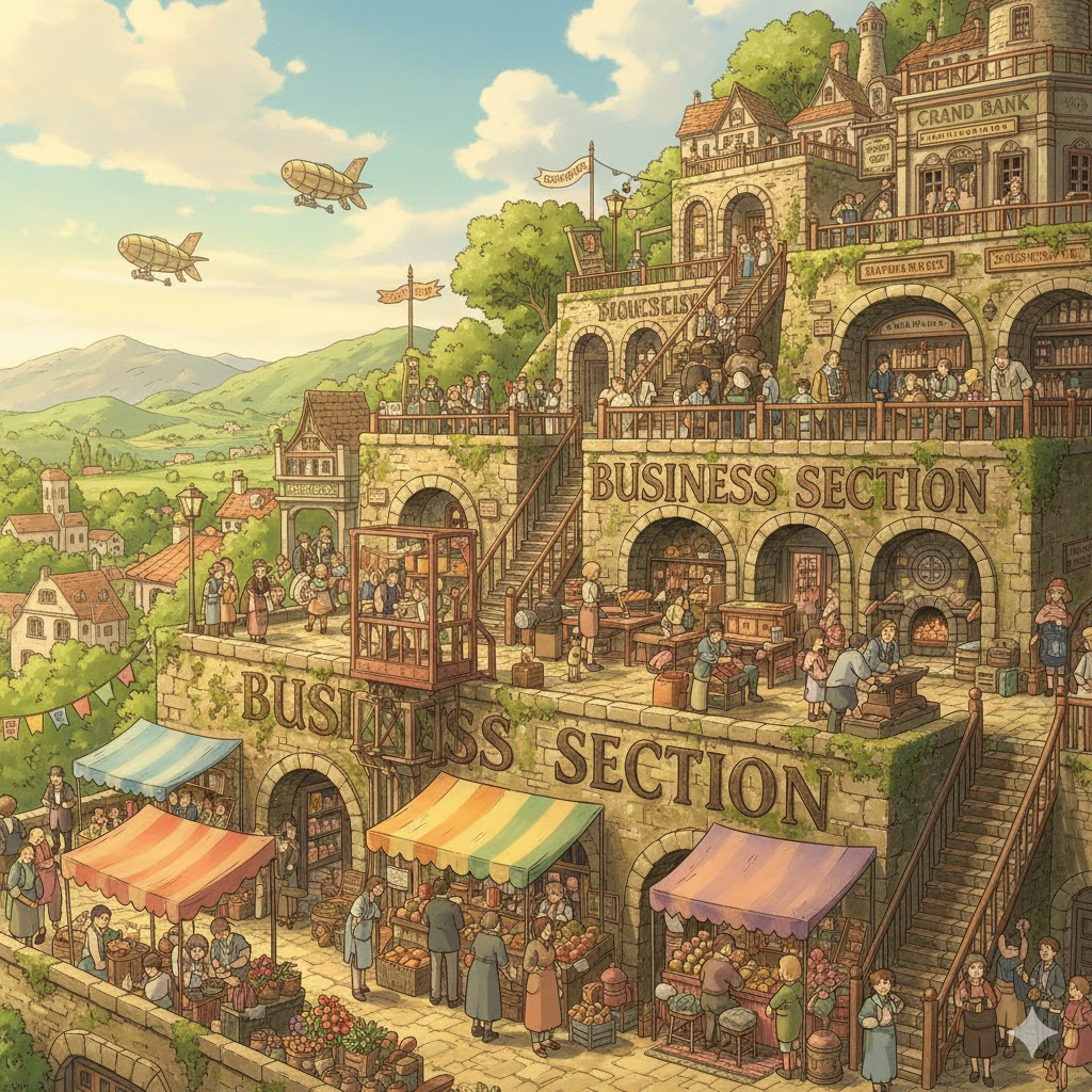 - 해석: 신문이나 잡지에서 경제, 금융, 또는 경영 관련 뉴스를 다루는 부분, 또는 기업의 경영 부문.