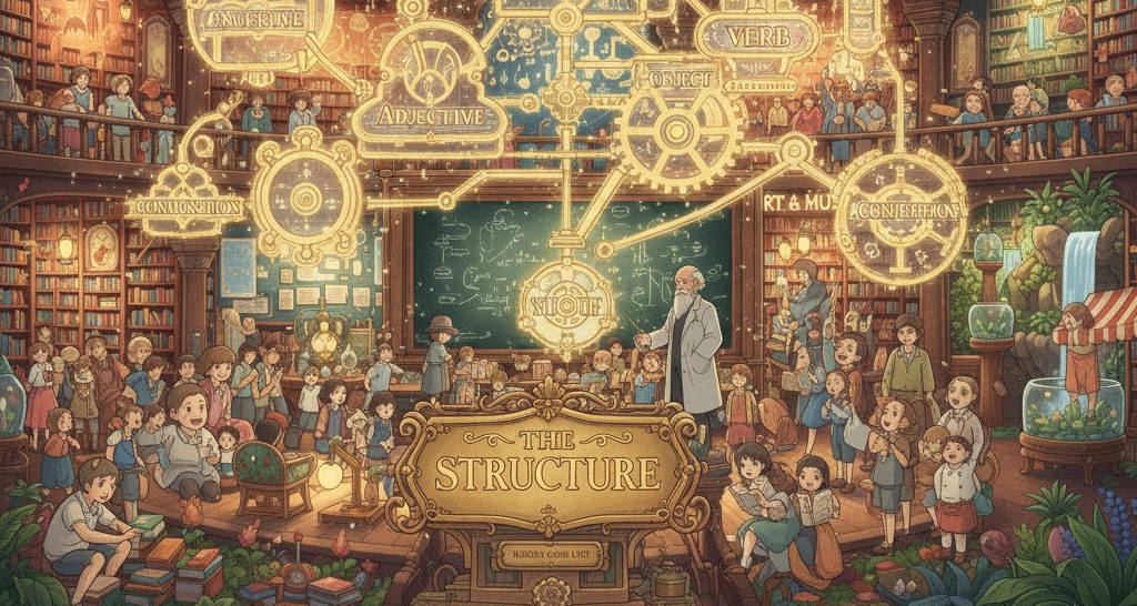 - 해석: 문장이 문법 규칙에 따라 주어, 동사, 목적어 등의 요소로 배열되는 방식.