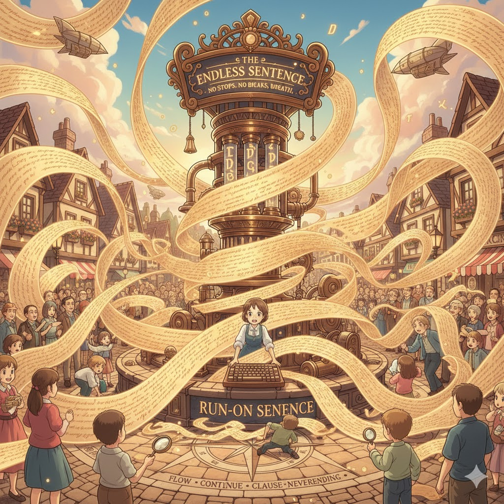 - 해석: 두 개 이상의 독립된 절이 적절한 구두점이나 접속사 없이 연결되어 문법적으로 오류가 있는 문장. (작문, 언어학 지문에서 중요)