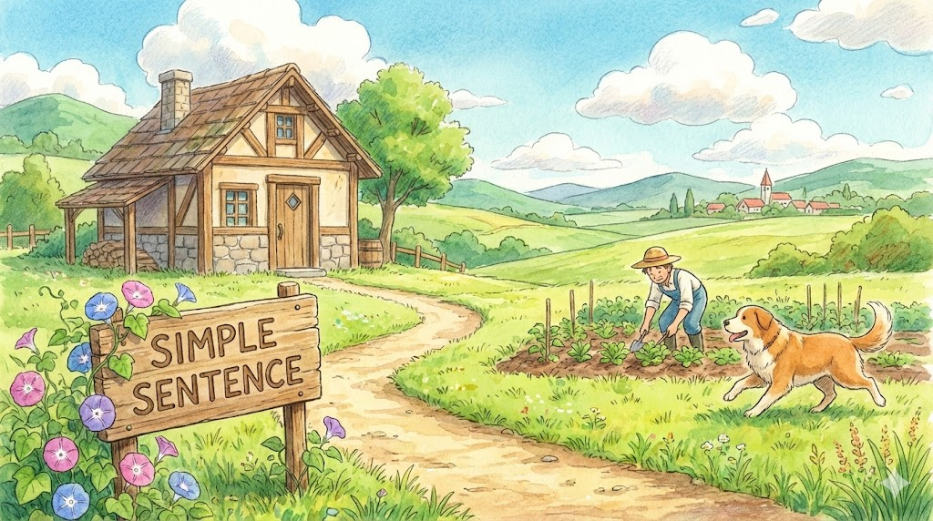 - 예문: "The dog barked" is an example of a simple sentence. ("개는 짖었다"는 단문의 예이다.)
