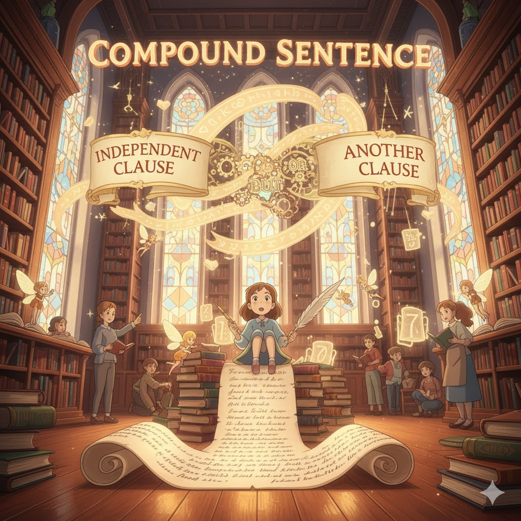 - 해석: 두 개 이상의 독립된 절이 등위 접속사 (and, but, or 등)로 연결된 문장.