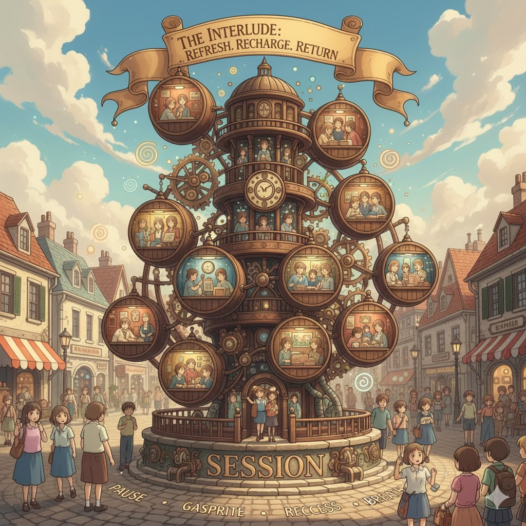 - 해석: 공식적인 회의, 법정 심리, 또는 긴 학습 시간 중에 주어지는 짧은 휴식 시간.