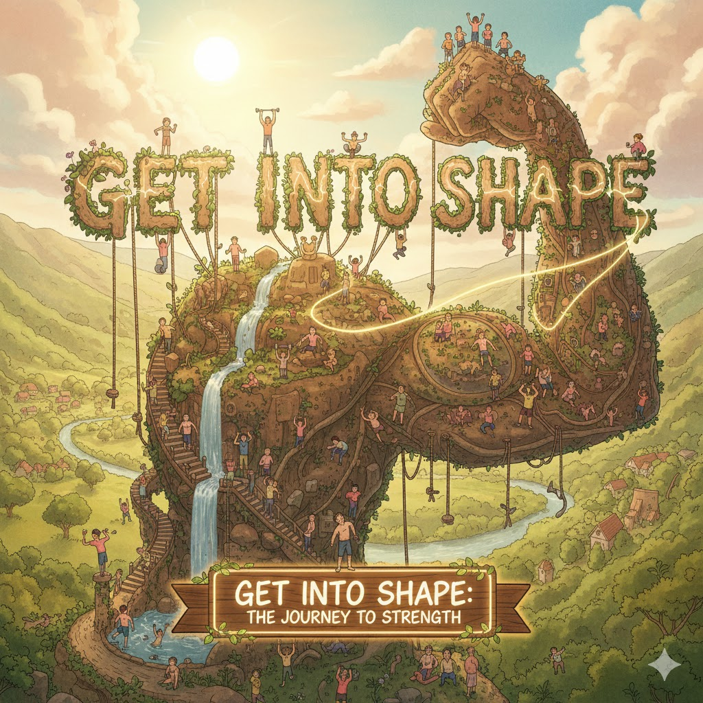 '이전'(former)에 '좋지'(bad) 않거나 '게을렀던'(lazy) '몸'(body) '상태'(out of shape)에서 '벗어나', '운동'(exercise)과 '식단'(diet) '관리'(management)를 '통해', '더', '건강하고'(healthier) '좋은'(good) '체력'(fitness) '상태'(shape)를 '만들어내는'(achieve) 행위를 의미합니다. '능동적인'(proactive) '노력'(effort)과 '변화'(change)를 강조합니다.