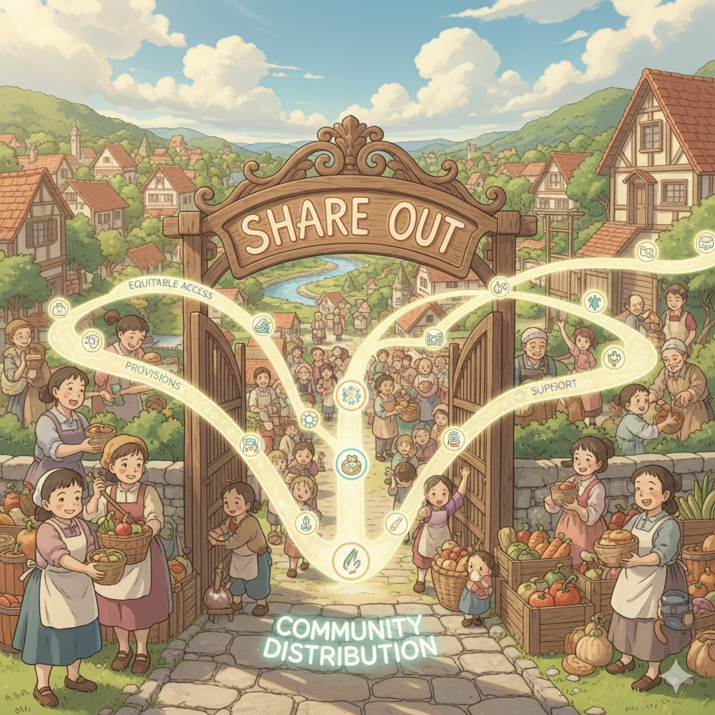- The manager decided to share out the extra bonus equally among all employees. (관리자는 추가 보너스를 모든 직원들에게 공평하게 나누어주기로 결정했다.)