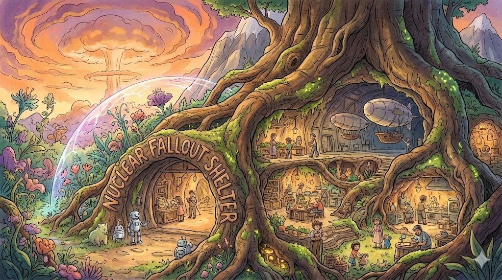 - 해석: 핵 공격 이후 발생하는 방사능 낙진으로부터 사람들을 보호하기 위해 건설된 시설.