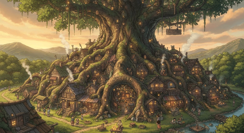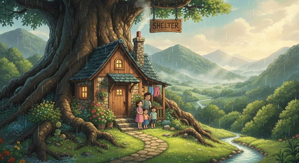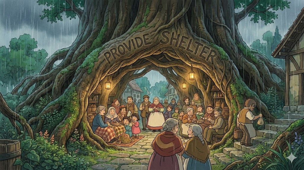 - 해석: 위험이나 악조건으로부터 안전하게 머물 수 있는 공간을 제공하는 행위.