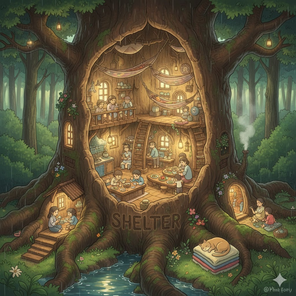 shelter [ˈʃeltər] 위험에서 보호받는 곳, 안식처의 의미