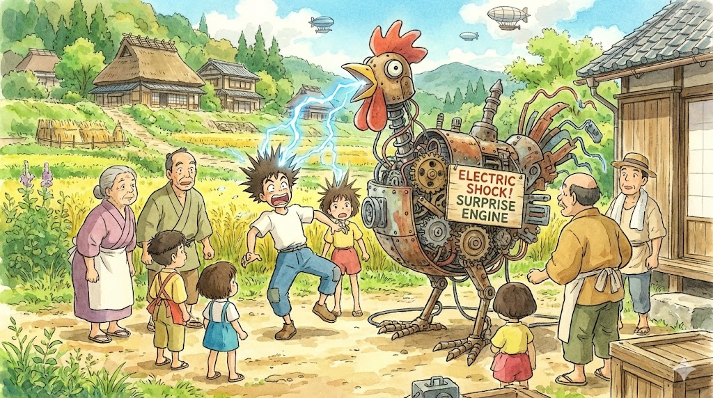 예문: The sudden surge of power gave the machine a jolt.
