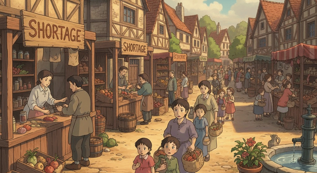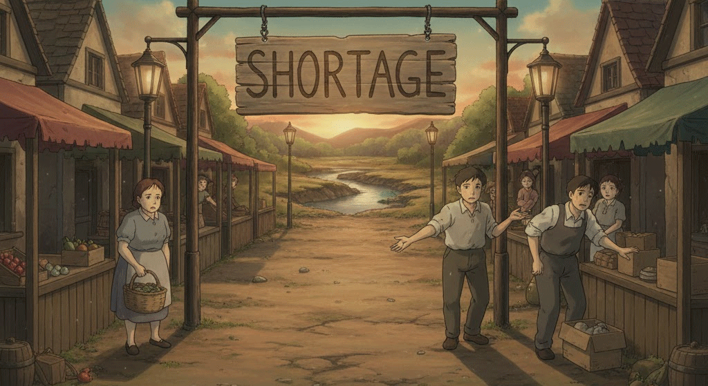 | 고대 영어 sceort (짧은) + age (상태) | "요구되는 것보다 짧은 상태" | 물품/자원의 공급 부족 → 결핍/결여 → 인력난/품귀 현상 |