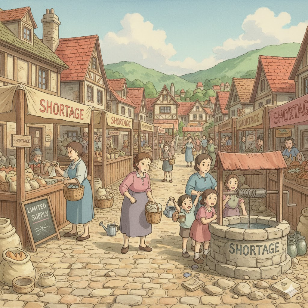 shortage, labor shortage, housing shortage, water shortage, food shortage
