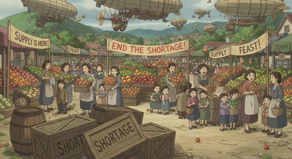 - 해석: 공급을 늘리거나 수요를 줄이는 등 부족 문제를 해결하는 행위.