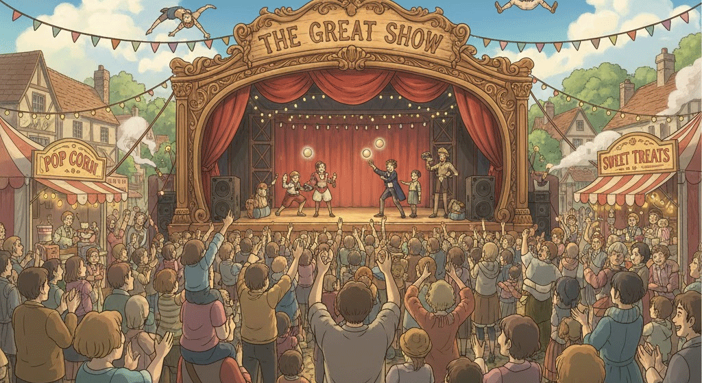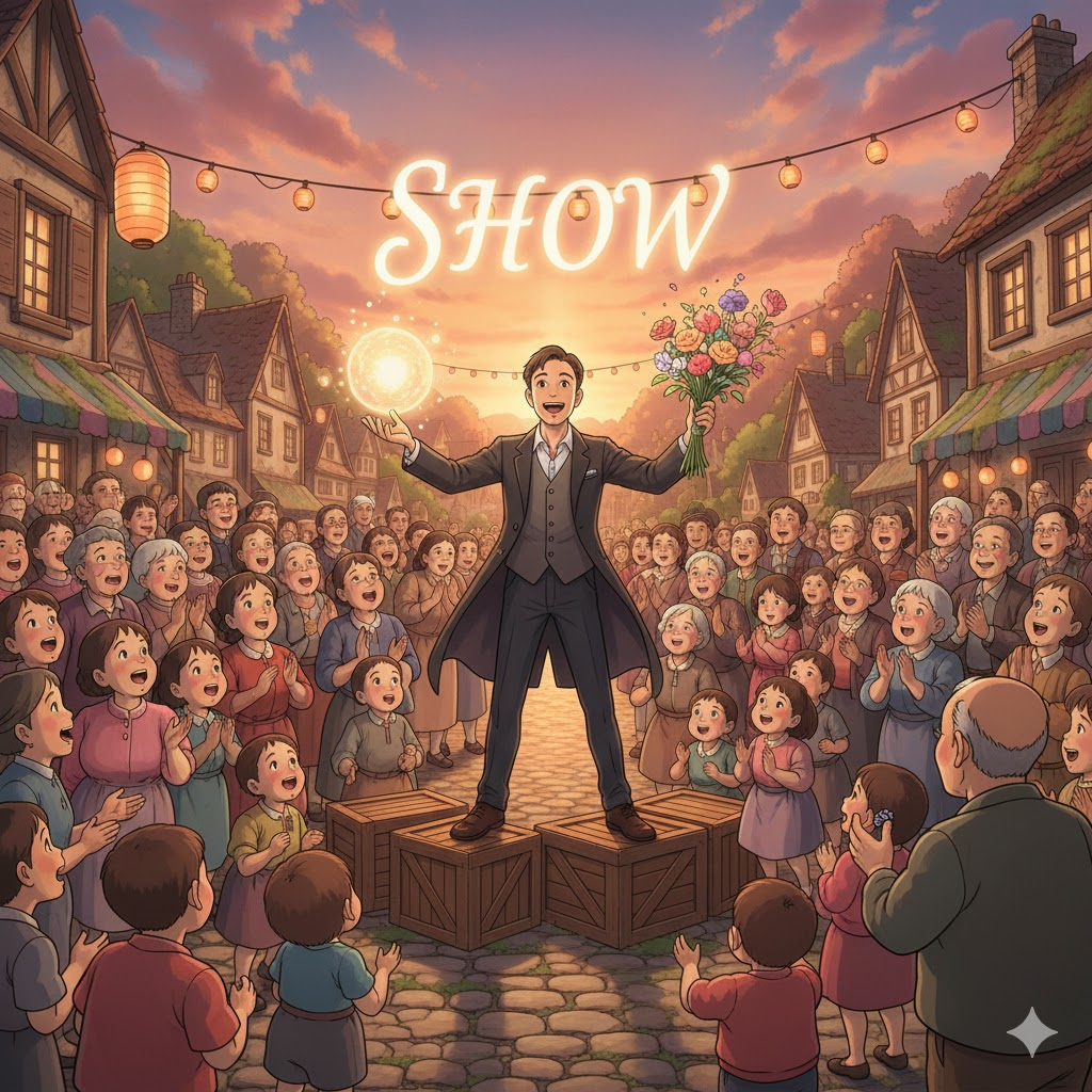'show'는 기본적으로 "보여주다", "나타내다"라는 뜻으로 쓰이며, 시각적으로 드러내거나 증명하는 행위를 의미합니다. 또한, "쇼", "구경거리"라는 명사의 뜻도 가집니다. 일상생활, 엔터테인먼트, 비즈니스, 심리 등 다양한 분야에서 핵심 단어로 등장합니다.