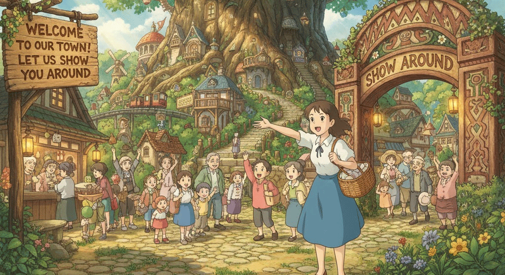 - 해석: 방문객에게 장소나 시설을 데리고 다니며 안내하는 행위.