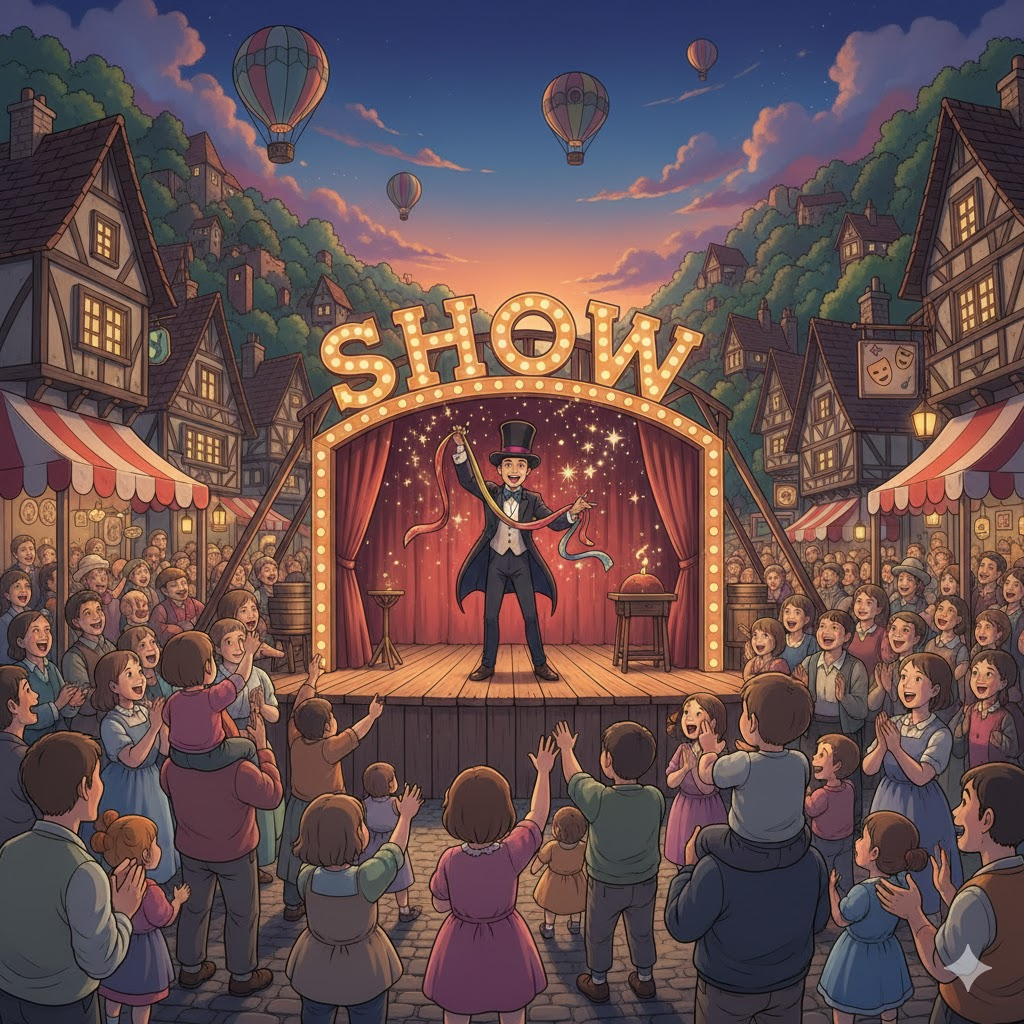 show [ʃoʊ] 무언가를 보이게 하거나 무대에서 하는 공연을 뜻하는 단어.