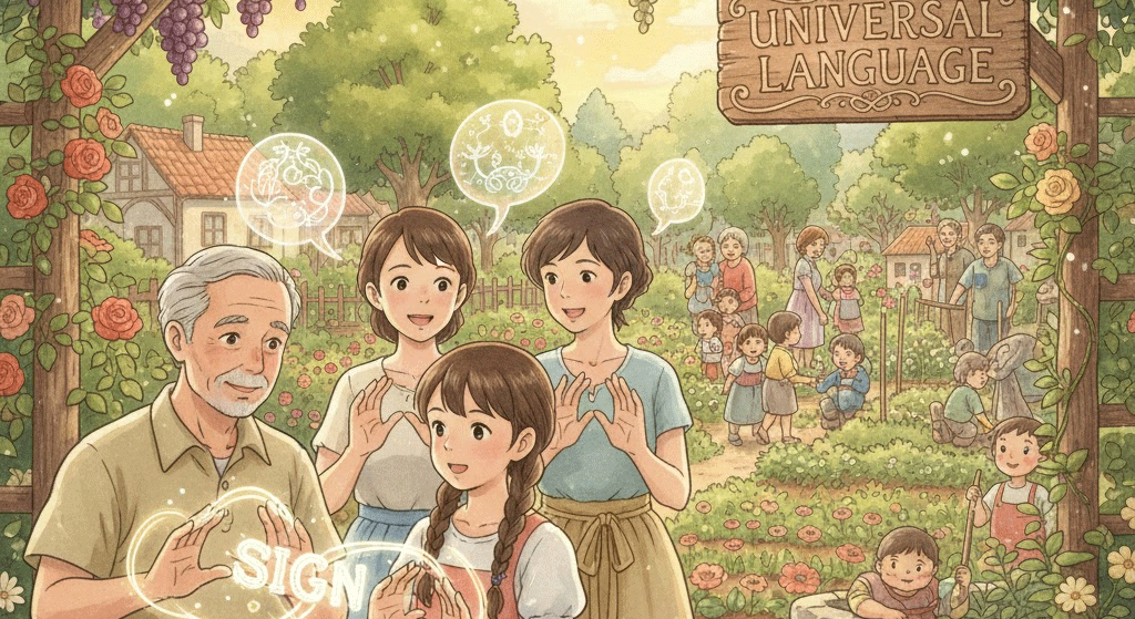 청각 장애인이나 언어 장애인이 의사소통을 위해 사용하는 손짓, 몸짓, 표정 등으로 구성된 시각적 언어 체계를 의미합니다.