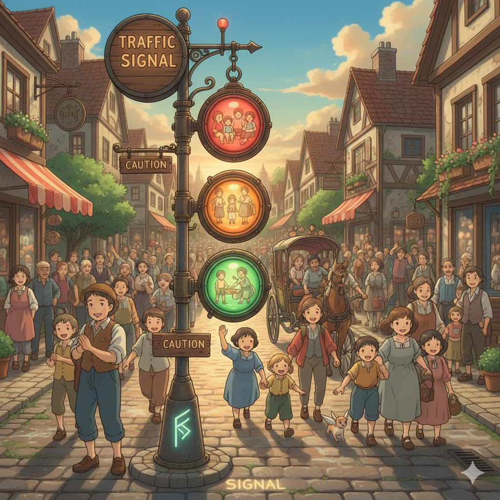 - 해석: 도로 교통을 통제하기 위해 색깔 불빛을 사용하는 장치.
