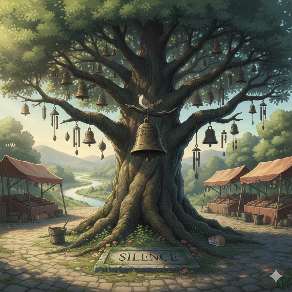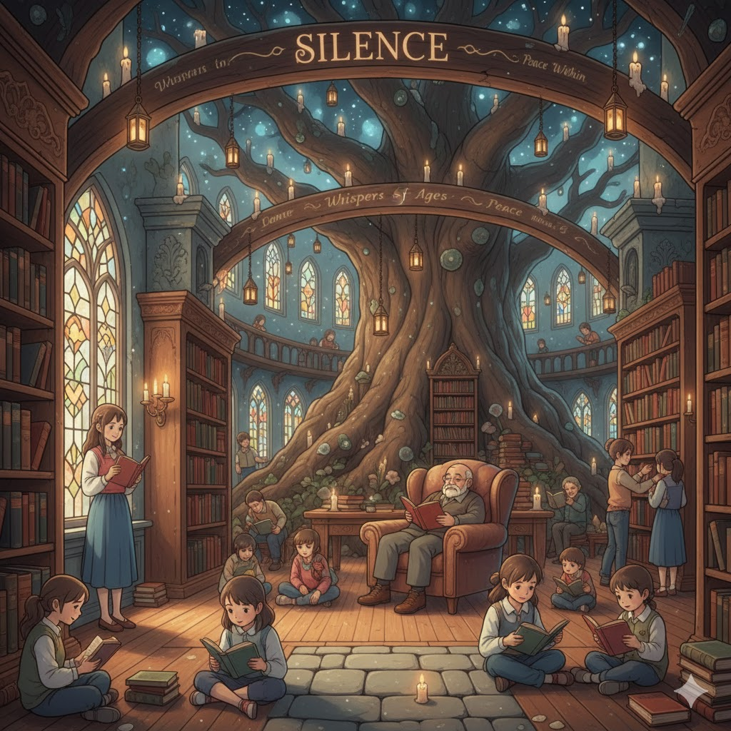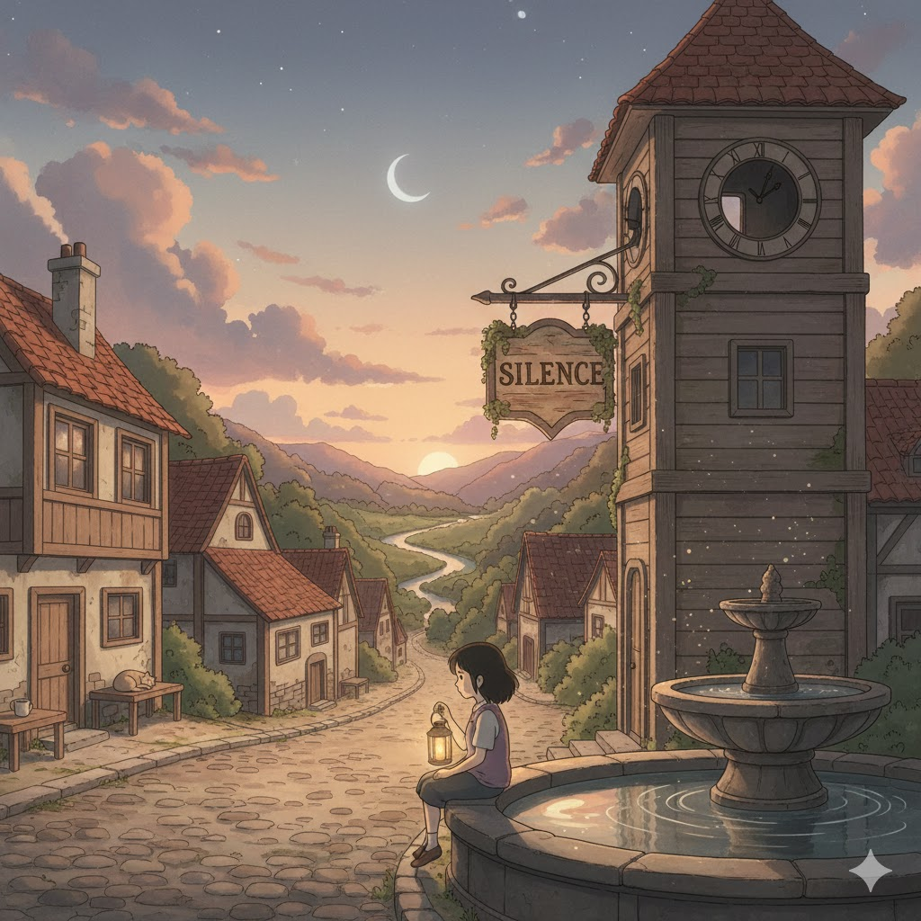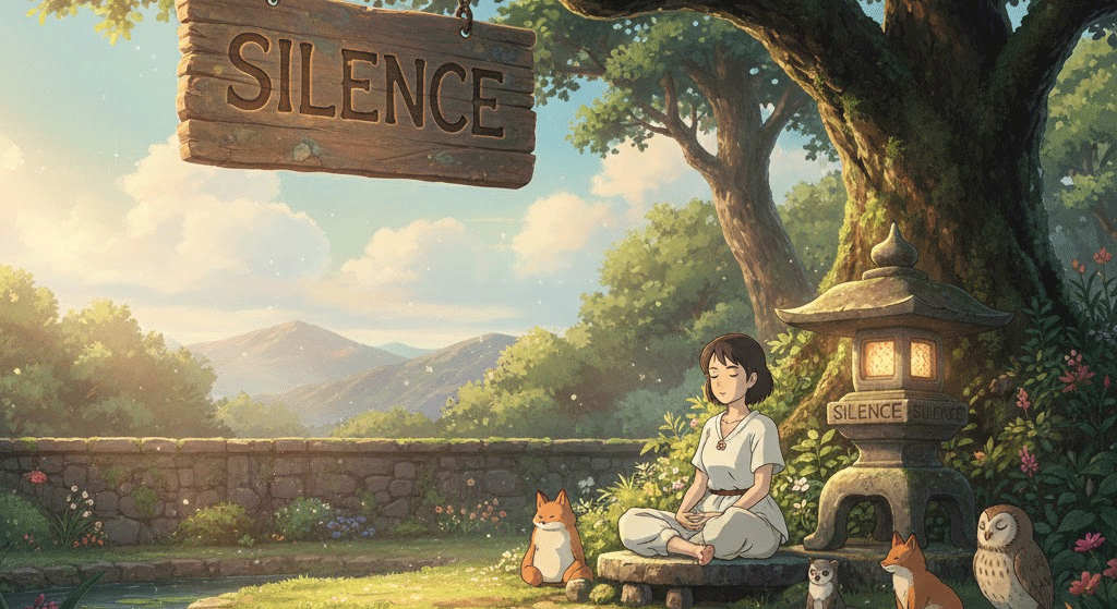 침묵, 고요. 소리의 부재, 말을 하지 않는 상태, 그리고 침묵의 가치와 의식.