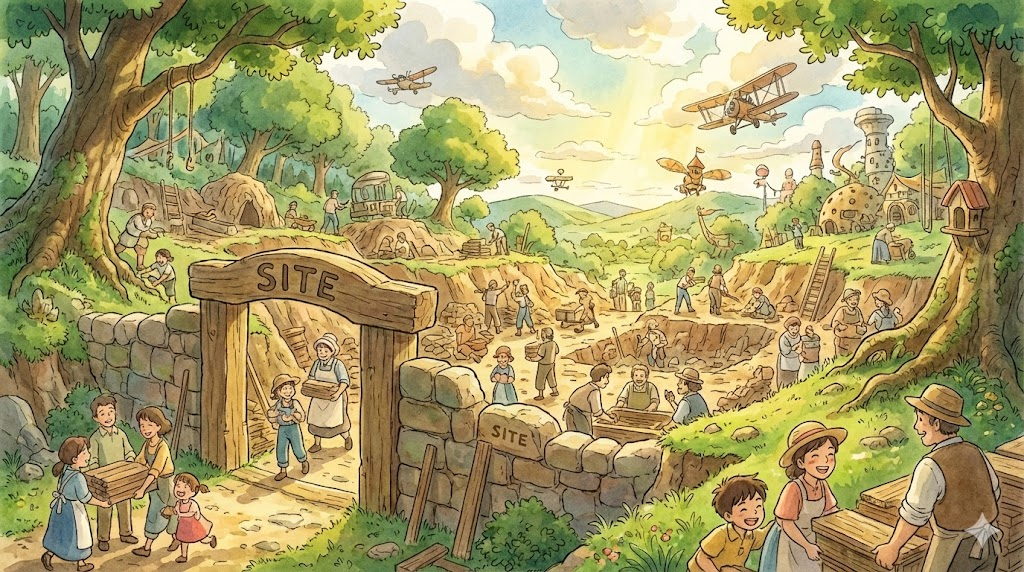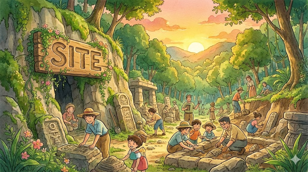 - 해석: 고대 유물이나 흔적을 찾기 위해 발굴 작업이 이루어지는 장소.