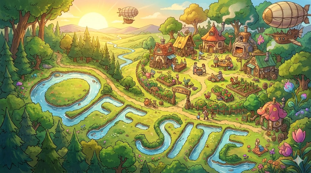 - 해석: 주된 근무지나 현장에서 떨어진 다른 장소. (on-site와 대비)