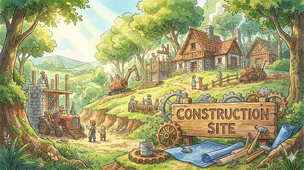 - 해석: 건물, 도로, 시설 등을 짓거나 수리하는 작업이 진행 중인 장소. (안전, 산업 지문에서 중요)