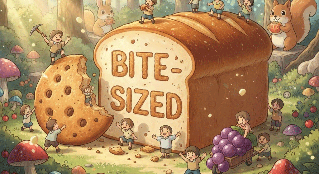 - The information was presented in bite-sized chunks. (그 정보는 한입 크기(알기 쉬운) 덩어리로 제공되었다.)