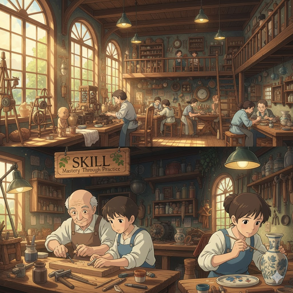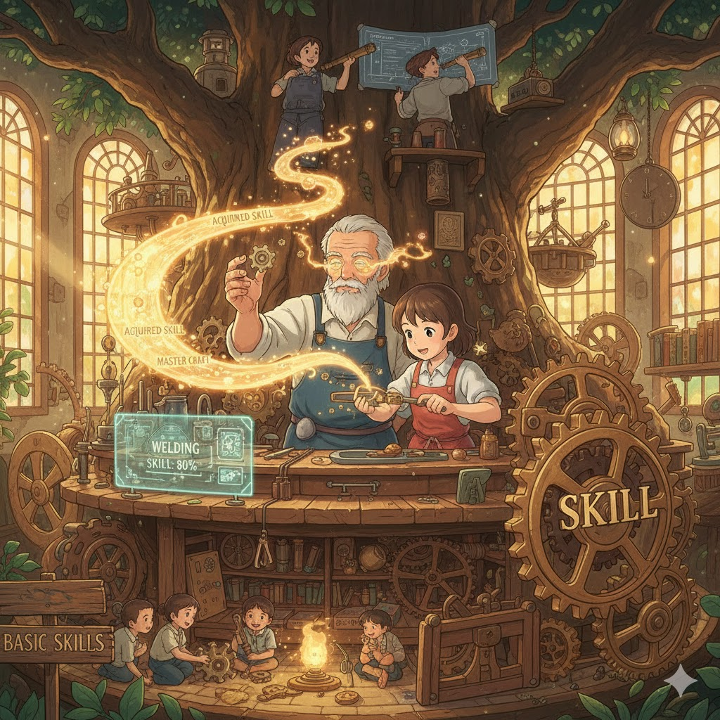 기술의 유형과 발전. 직무 능력의 분류, 기술의 연마, 습득, 그리고 숙달.