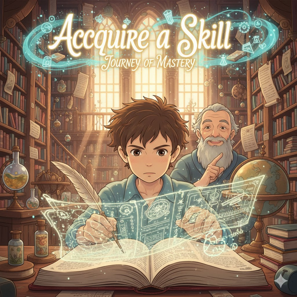 새로운 기술이나 능력을 노력, 학습, 또는 경험을 통해 자신의 것으로 만드는(get/gain) 과정을 의미합니다. 처음 배우는 단계부터 익숙해지는 단계까지를 포괄합니다.