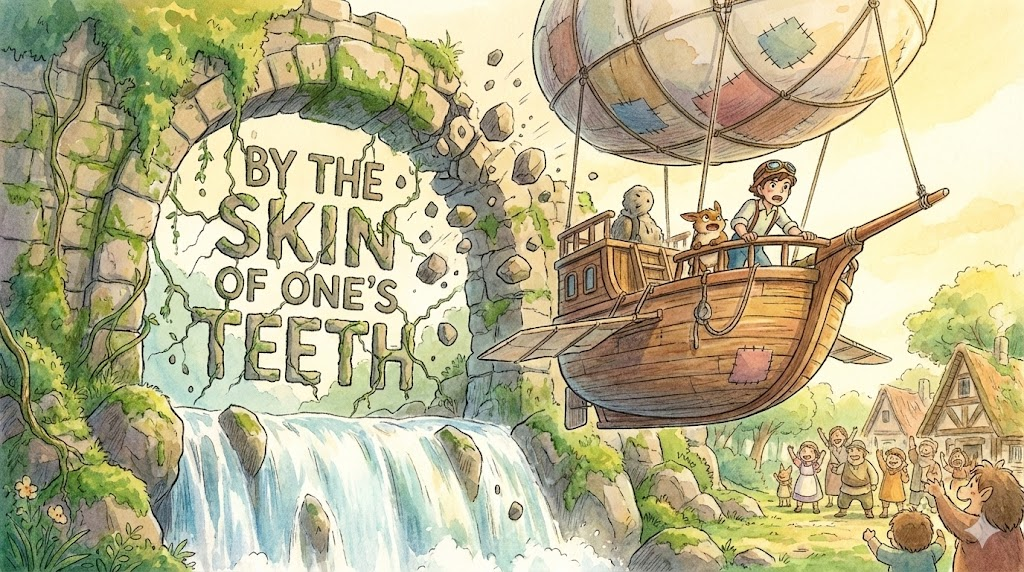 - 예문: We escaped the burning building by the skin of our teeth. (우리는 불타는 건물에서 가까스로 탈출했다.)