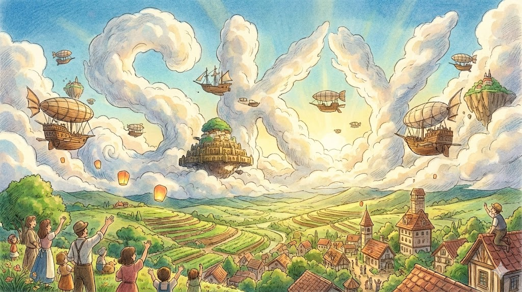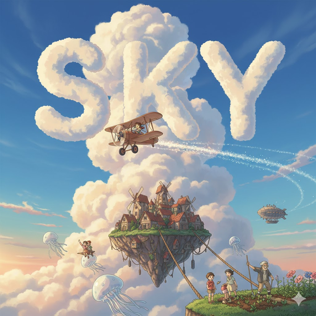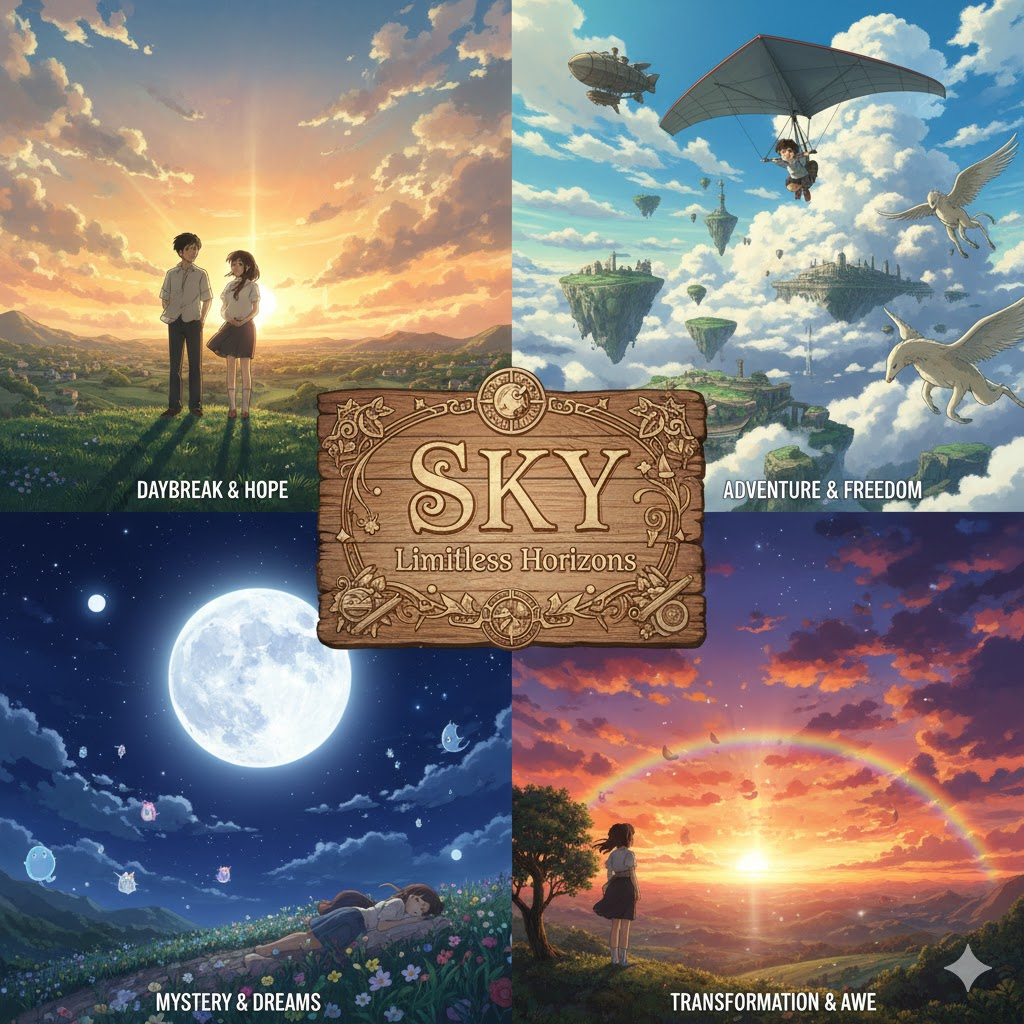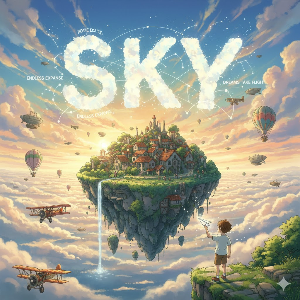 하늘, 한계 없음, 비현실성. 무한한 가능성, 허황된 꿈, 매우 높음, 자유로운 사고.