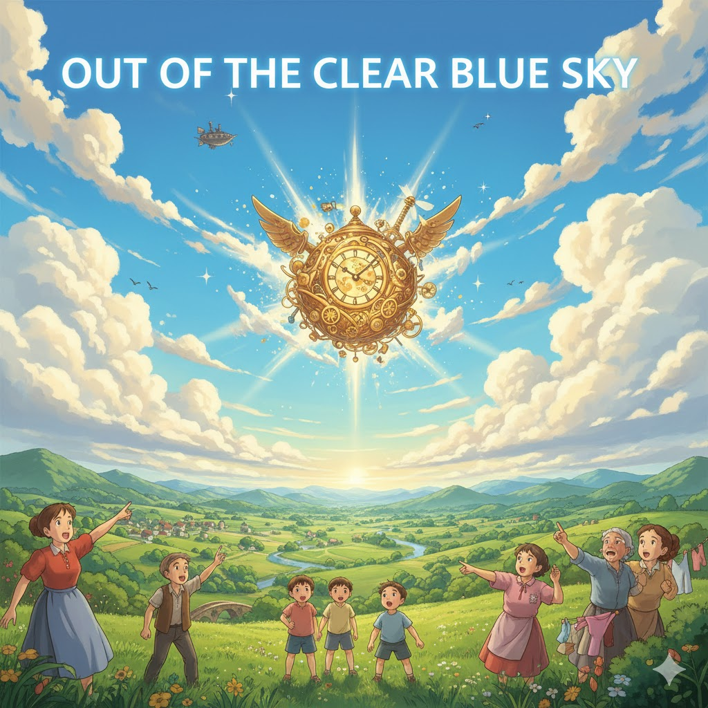 out of the clear blue sky [aʊt əv ðə klɪr bluː skaɪ]