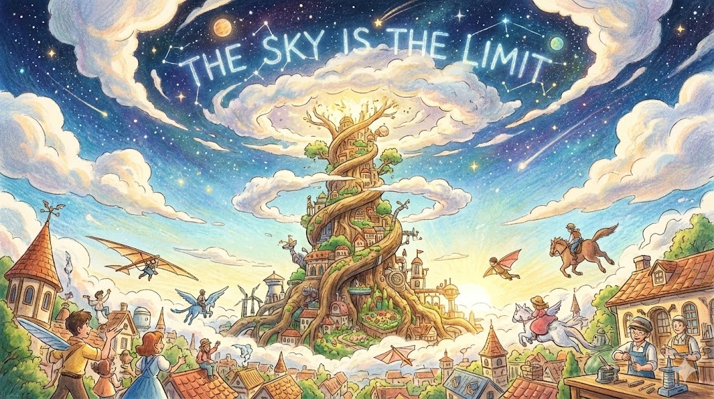 'sky'와 관련된 숙어들은 '무한한 가능성', '갑작스러운 변화', '비현실적인 꿈', '급격한 상승' 등 다양한 상황을 비유적으로 표현합니다.