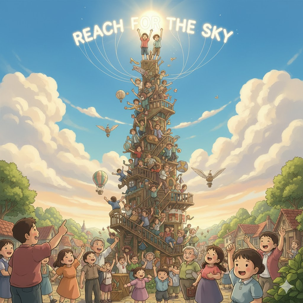 reach for the sky [riːtʃ fɔːr ðə skaɪ]