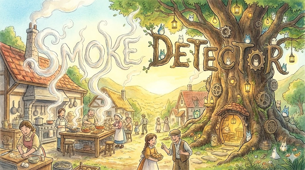 - 해석: 화재 발생 시 연기를 감지하여 경보를 울리는 안전 장치.